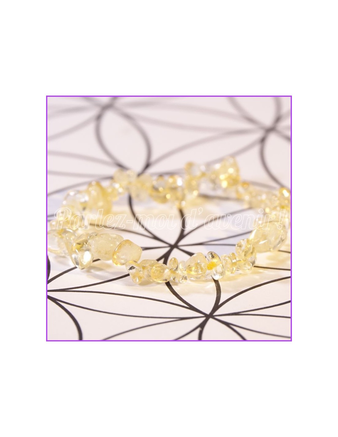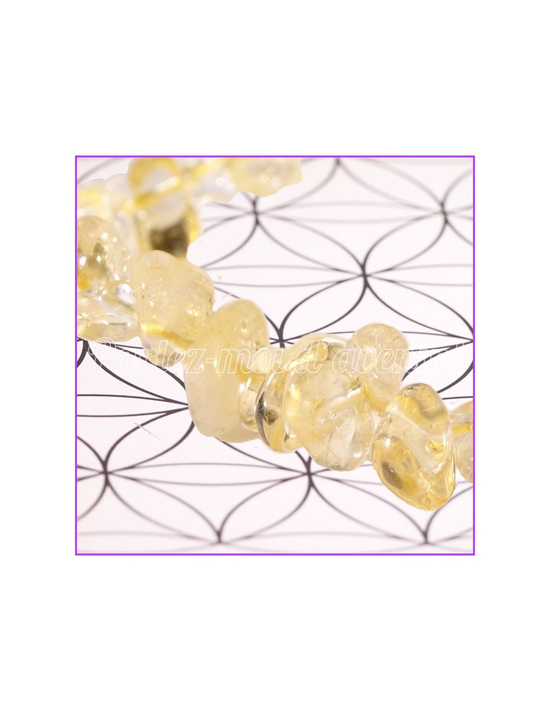 "La citrine est une pierre d'énergie positive qui rayonne la joie et l’optimisme. Elle favorise les pensées positives. C’est également une pierre tonifiante qui redynamise le corps et redonne de la vitalité. Elle est naturellement reliée au chakra du plexus solaire. Elle nous donne force et confiance pour exprimer pleinement notre potentiel. Elle apporte une grande stabilité à la personne qui la porte. Elle aide à la concentration et fortifie la mémoire. Idéale lors d’un examen, elle éloigne la fatigue, développe les facultés intellectuelles et stimule l’imagination. Elle est excellente pour surmonter la dépression, les peurs et les phobies. elle aide ceux qui ont une mauvaise estime de soi.